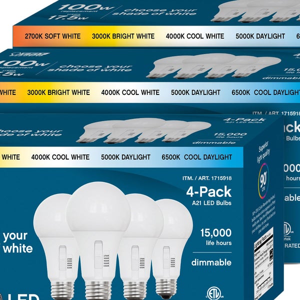Feit Electric 100W Replacement 5-CCT LED A21 Bulbs, 12-pack