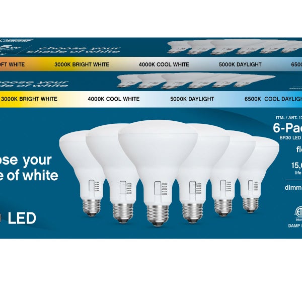 Feit Electric 65W Replacement 5-CCT LED BR30 Bulbs, 12-pack