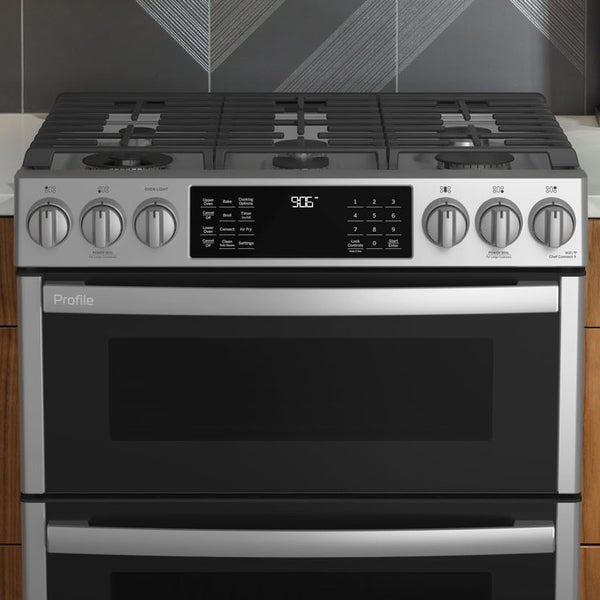 GE Profile 30 Inch. 6.7 cu. ft. Smart Slide-In Front-Control GAS Double Oven Convection Range with No Preheat Air Fry